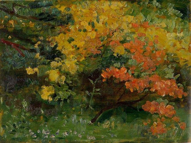Illustrations : 1/ « Une montagne d’azalées » 2/ « Chrysanthèmes » 3/ « Fleurs et chat » Kuroda Seiki 1866-1924 4/ « Saules près d’un ruisseau » Pascal Dagnan-Bouveret 1852-1919.