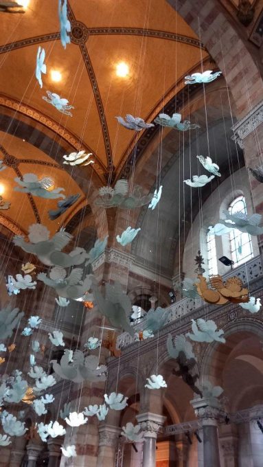 600 anges et 30000 poissons de verre (colonne de 10 mètres de haut)