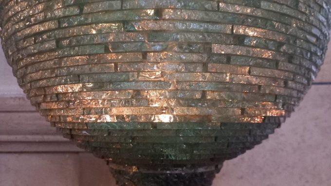 le verre y est travaillé, teinté, sablé, ciselé, empilé par couches…